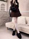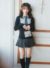 スカートと同生地のネクタイ付きで、スクールガール風の着こなしも楽しめる。