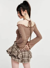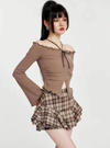 クラシカルなチェック柄とボリュームたっぷりのフリルが魅力的なアイテム。裾に向かってふんわり広がるフリルが可憐な印象を与える。