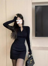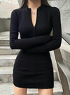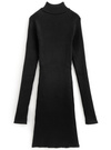 直線的なタイトシルエットで女性らしいラインを際立たせるニットワンピース。ストレッチの効いたリブニットはフィット感があり細見え効果抜群。