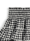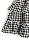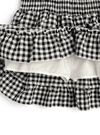 ギンガムチェック柄にたっぷりのフリルを重ね、レトロな存在感を放つ。シャーリング入りのウエストは優しくフィットし、着替えもスムーズ。