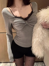 レースレイヤード風リボンデザイントップスの商品詳細情報のページです。