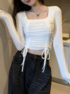 フロントに施したドロストリボンアクセントになったトップス。