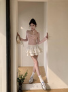 甘めのミニスカートから、デニムでカジュアルダウンするのも◎。
