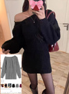 ワンショルダーリボンラメニットミニワンピース[ks203]
