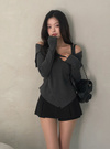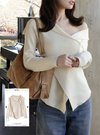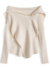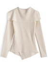 女性らしい曲線を引き立てる、アシンメトリーデザインのリブニットトップス。