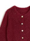 きらめくラメ糸をミックスして華やかに編み上げたニットカーディガン。