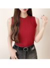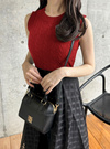 細かいケーブル編みで大人っぽい存在感を放つニットトップス。ノースリーブのコンパクトなサイズ感が女性らしさもプラス。