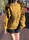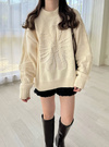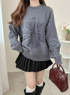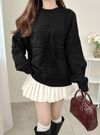 ふっくらとしたニット素材で仕立てた、あたたかみを感じるプルオーバー。前後にあしらった立体的なお花の編地が、遊び心のあるアクセントに。