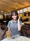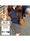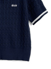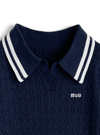 配色ラインロゴ刺繍ケーブルニットポロトップスの商品詳細情報のページです。