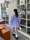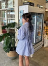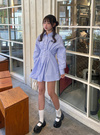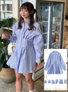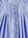 ロゴ刺繍バックレースアップストライプ柄シャツワンピースの商品詳細情報のページです。