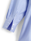 ハリのあるシャツ素材にストライプ柄をのせて、存在感を生み出す。胸元のロゴ刺繍ディテールが、カジュアルなテイストをプラス。