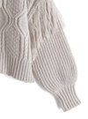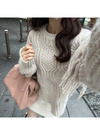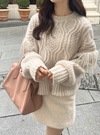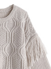 フリンジケーブル編みラウンドネックニットトップス[kz704]