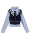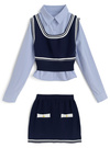 ネクタイ付きシャツ×ニットベスト×タイトスカートセットアップの商品詳細情報のページです。