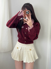 クラシカルなチェックシャツをレイヤードしたようなニットカーディガン。襟部分は取り外しが可能なので、簡単に雰囲気を変えられスタリングの幅が広がる。