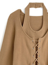 ホルターネックレイヤード風レースアップニットトップスの商品詳細情報のページです。