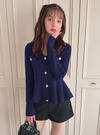 ツイードモチーフのゴールドボタンがこだわりの高見えポイント。