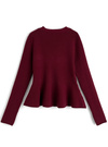 柔らかいリブニット素材で仕立てた、カーディガン風デザインが魅力のトップス。ふんわり広がるペプラムシルエットが、女性らしい雰囲気を引き立てる。