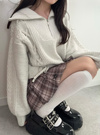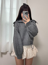 程よい厚みのニットにキラッと輝くラメ糸を混ぜたこだわりトップス。マニッシュなハーフジップとガーリーなレースアップの組み合わせが甘辛ミックスな印象に。