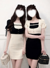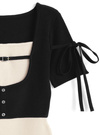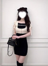 レイヤード風デザインが目を惹くフェミニンなミニワンピース。