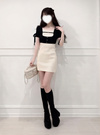 伸縮性のあるリブニット素材を使用しており着心地も◎。