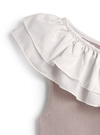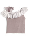 フリルドッキングワンショルダーリボンノースリーブニットトップスの商品詳細情報のページです。
