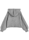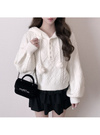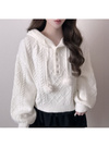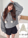立体感のあるケーブル編みニットで仕立てたあたたかみのあるトップス。ヒモ先にあしらったファーポンポンが愛らしいアクセント。