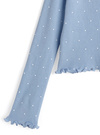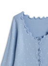 柔らかなリブニットにクラシカルな水玉模様をあしらったカーディガン。