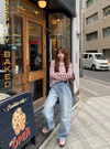 お好みでシャツやカットソーを合わせたレイヤードスタイルもおすすめ。