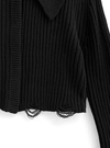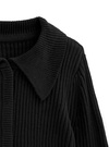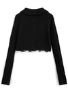 程よいフィット感とリブ編みが生み出す、美しいシルエットのニットトップス。クロップド丈と大きめの襟が顔まわりを華やかでエレガントに見せ、トレンド感を添える。