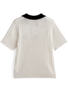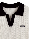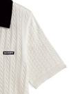 やわらかく編み立てた凹凸のあるケーブルニットが、奥行きをプラス。バイカラーのポロ襟にロゴパッチを加え、プレッピーなムードを引き寄せる。
