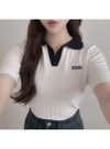 配色ケーブルポロニットトップスの商品詳細情報のページです。