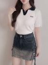 ミニボトムやソックスと合わせると、スクールライクなコーデが完成。