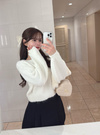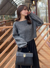 なめらかなモヘヤタッチニットで仕立てたコンパクトなトップス。広めのクルーネックがデコルテを美しく見せ、抜け感のある着こなしに。