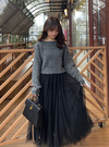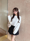 ボリュームスリーブがふんわりとしたシルエットを作り、華奢見えをアシスト。