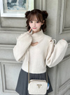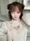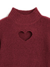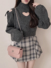 ふわりとしたニットで仕上げた、コンパクトなフォルムのトップス。胸元に施したハート型のカットが視線を惹きつけ、遊び心を添える。