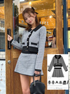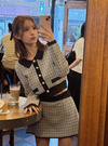 カーディガン×インパン裏地付きミニスカートラメツイードセットアップ[mb1618]