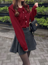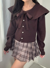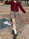 上品な大きめ襟が目を惹く、レトロガーリーなニットカーディガン。