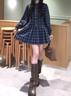 チェック柄プリーツシャツワンピースの商品詳細情報のページです。