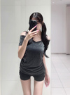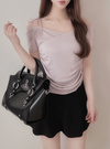 サイドに施されたシャーリングが立体的なドレープを作る。