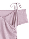リボンショルダーラメカシュクールトップスの商品詳細情報のページです。