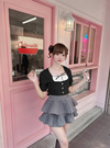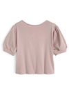 ふくらみを持たせたパフスリーブも甘さを添えるポイント。