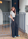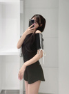 ミニマルな丈感で、ハイウエストボトムと合わせるとこなれ感のあるルックに。