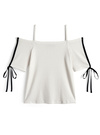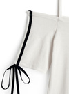 さっぱりとしたタッチのカットソー生地で、ストレスフリーな着心地に。両サイドに配色ラインとリボンを組み合わせ、スポーティーとガーリーを両立。