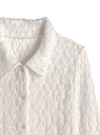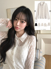 繊細なレース素材を使った上品なシアー感が魅力のシャツ。きちんと感のある襟が甘すぎず、爽やかな雰囲気を表現。