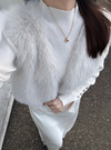 毛足の長いシャギーエコファーで、ボリューム感たっぷりに仕上げたベスト。フロントはノーボタン仕様にすることで、より洗練された印象をプラス。