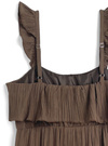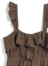シワ感のあるクレープワッシャー素材が、涼しげなニュアンスを演出。フリルをあしらったショルダーと胸元の切り替えが、装いに動きを添える。