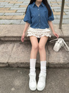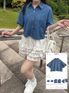 カジュアルなデニムシャツにバルーンスリーブを合わせて、甘さを足し算。ライトオンスデニムで重たくならず、爽やかに着られる。