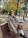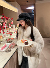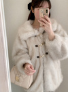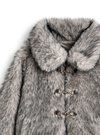 毛足の長いミックスエコファーで仕立てたボリュームたっぷりのコート。ふわふわのファーが、女性らしさ溢れる華やかなムードを演出。