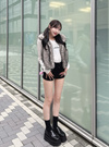 ダブルジップ仕様なので、開き具合でスタイリングのアレンジが可能。