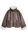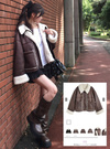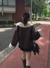しっとりとしたスエード調生地とモコモコのボアを組み合わせたブルゾン。内側全面がボア仕様になっているので、一枚羽織るだけで暖かい。